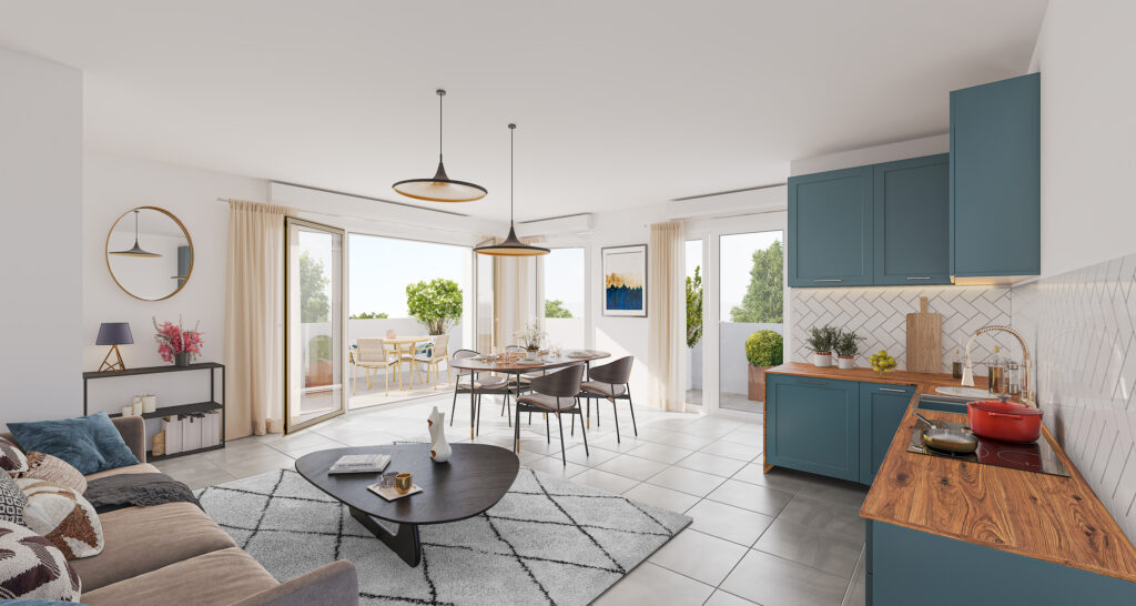 Nous contacterEn limite immédiate du 8e arrondissement lyonnais, le programme immobilier s’invite dans un quartier recherché en pleine mutation. Atouts mobilité : transports en commun à distance piétonne (bus, tram T4 et T6), périphérique et A7 rapidement accessibles. Résidence neuve RE 2020 avec appartements à double orientation et beau jardin paysager.